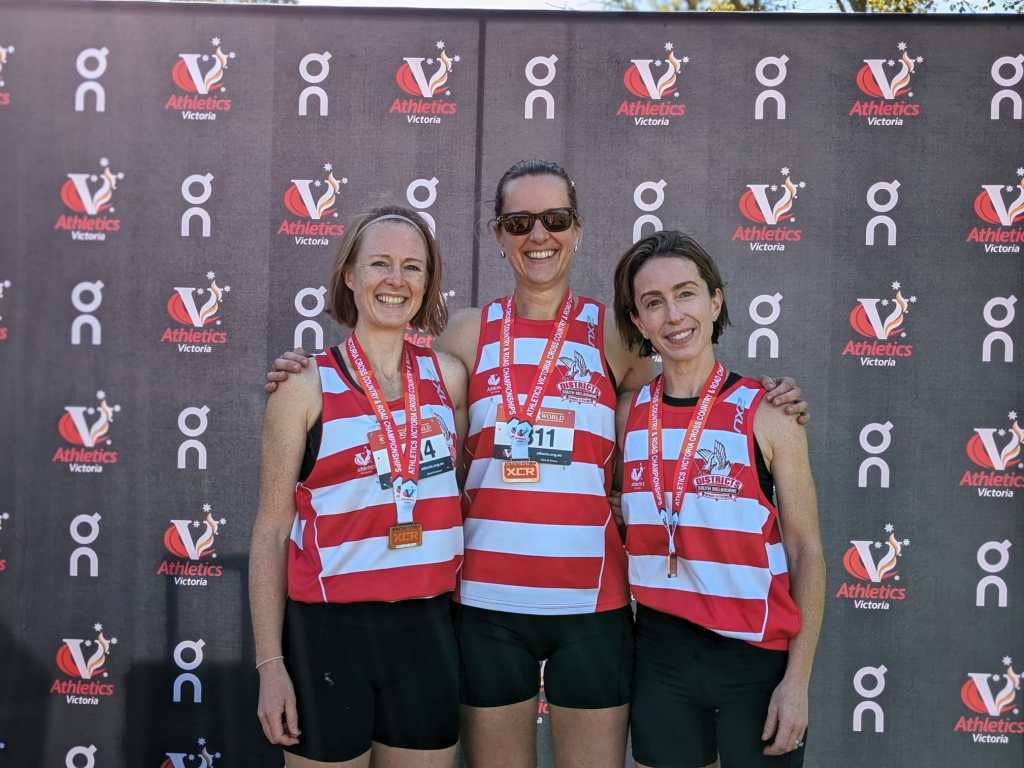 The over 40 girls had two new faces out of a team of three and it was fantastic to see them come away with the bronze medal. Gillian who ran first for the team was within the 10 quickest times for over 40 women on the day. The next runner was Annette who was the ‘experienced’ runner of the team having also ran for South Melbourne last year. Sharon was given the task of finishing and did this perfectly.